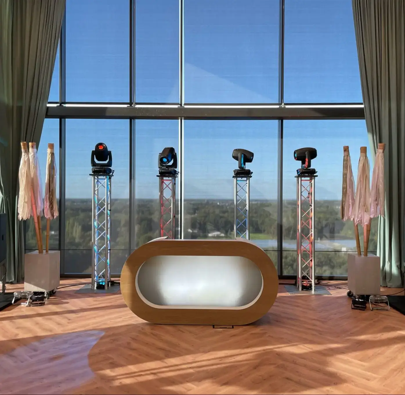 Al in de vakantiestemming? Dan is deze show wat voor jullie! De Ibiza Show heeft een ovaal, wit meubel dat wordt geleverd met prachtige Ibiza vlaggen. De vier truss zuilen met movingheads zorgen voor een extra feestelijk gevoel.